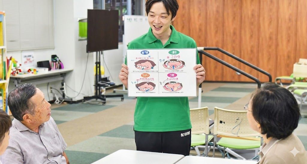 身体のトレーニングだけでなく、脳トレを兼ねた体操や、「咀嚼(かむ)・嚥下(飲み込む)・呼吸」の機能を高める口腔機能訓練にも力を入れています。心身両面からのアプローチで、いつまでも健やかな生活をサポートします。
