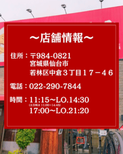 👉 詳細はこちら:上海厨房 仙台中倉店 公式ページ