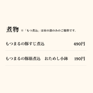 丁寧に煮込まれた豚もつは驚くほどやわらかく、旨みがしっかり染み込んでいます。