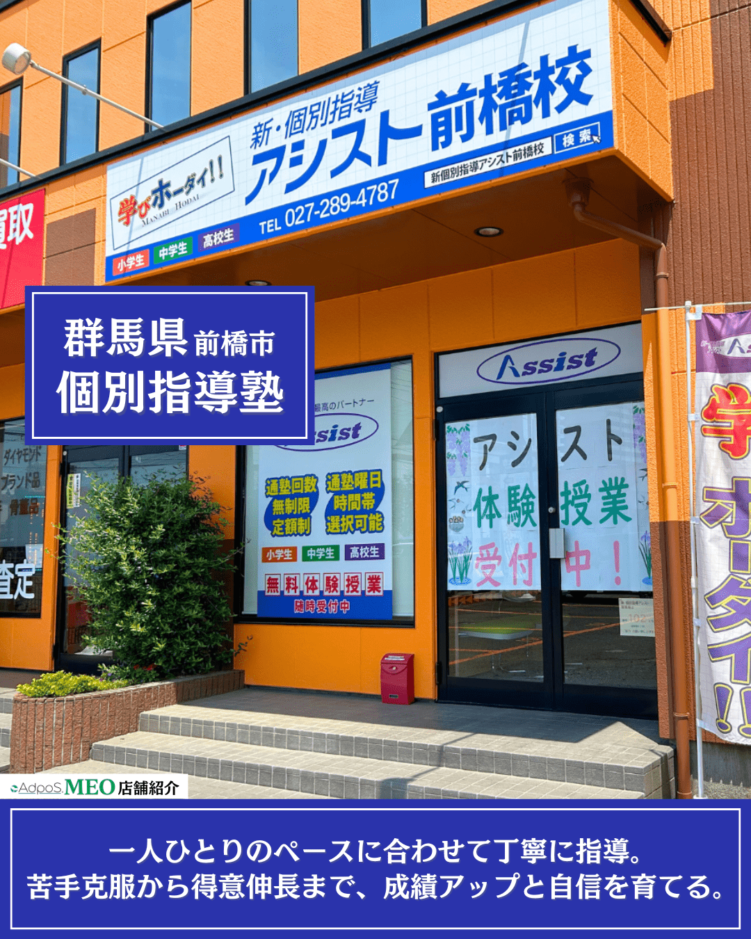 今回ご紹介するのは、群馬県前橋市天川原町にある【新・個別指導アシスト前橋校】さまです。
