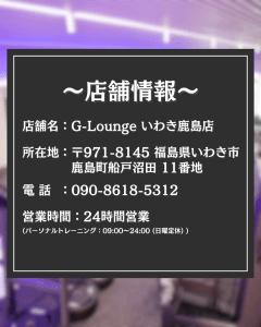 【いわきのパーソナルジム】初心者でも結果が出るマンツーマントレーニング|G-Lounge いわき鹿島店 さま