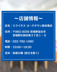 今回は、保険・資産運用・老後資金までを一か所で相談できる、仙台市宮城野区の《ミライタス ヨークタウン新田東店》さまをご紹介します。