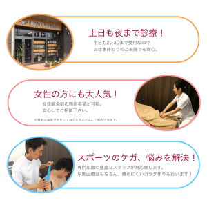 市名坂はり灸整骨院さまは、夜20:30まで受付(日曜は19:30まで)しており、
