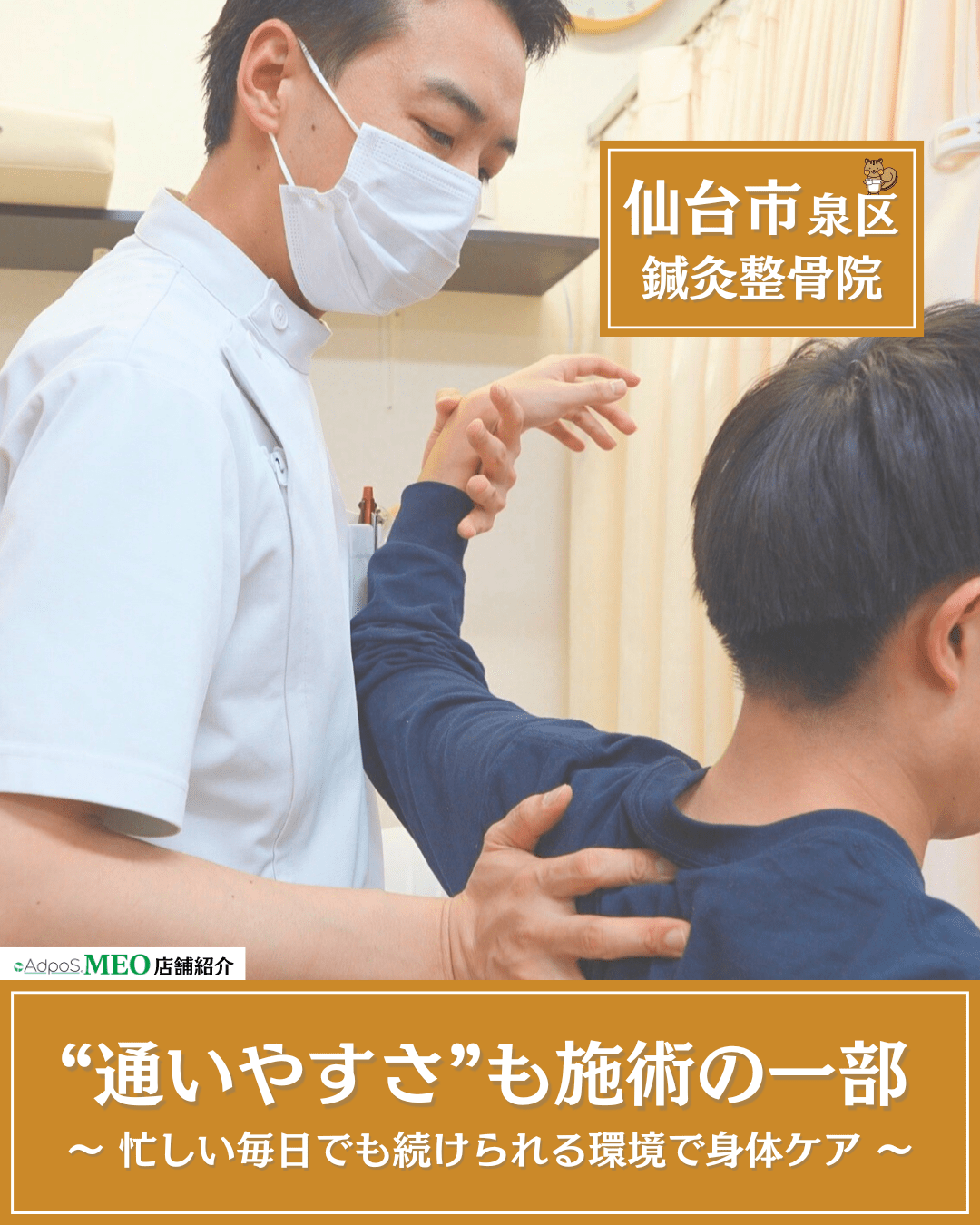 泉区・市名坂エリアで整骨院をお探しの方、身体の不調にお悩みの方は、一度相談してみてはいかがでしょうか。