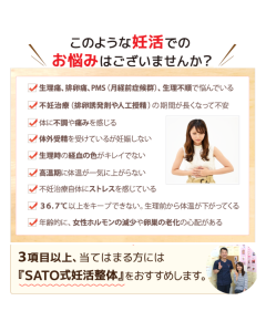 妊活整体にも専門的に取り組まれており、SATO式妊活整体を軸に、脳反射検査と脳反射システム調整を組み合わせながら、妊娠を妨げる体のクセや不調を一つひとつ丁寧に見極めます。