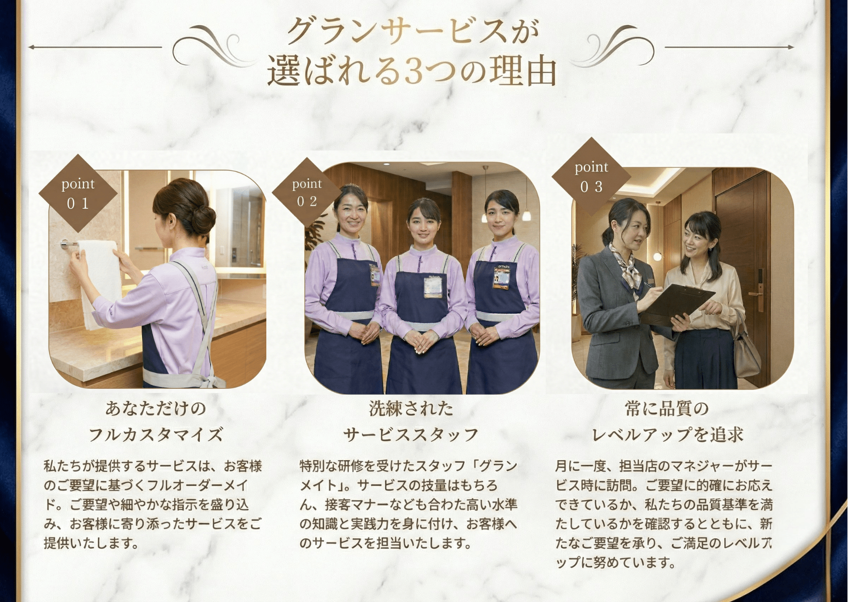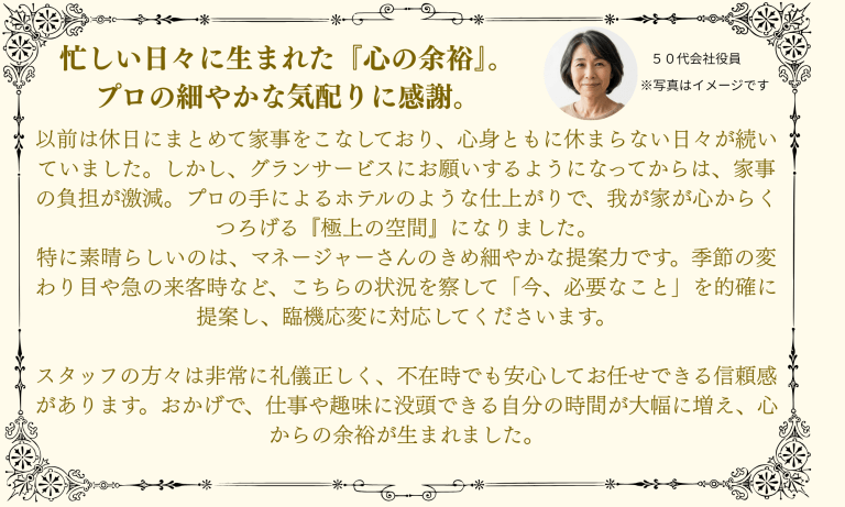 プロとしての研修を積んだグランメイトがご提供する、