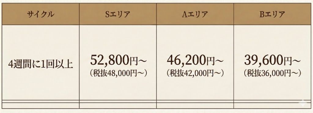 【定期サービス標準料金表3名・2時間〜(もしくは2名・3時間)
